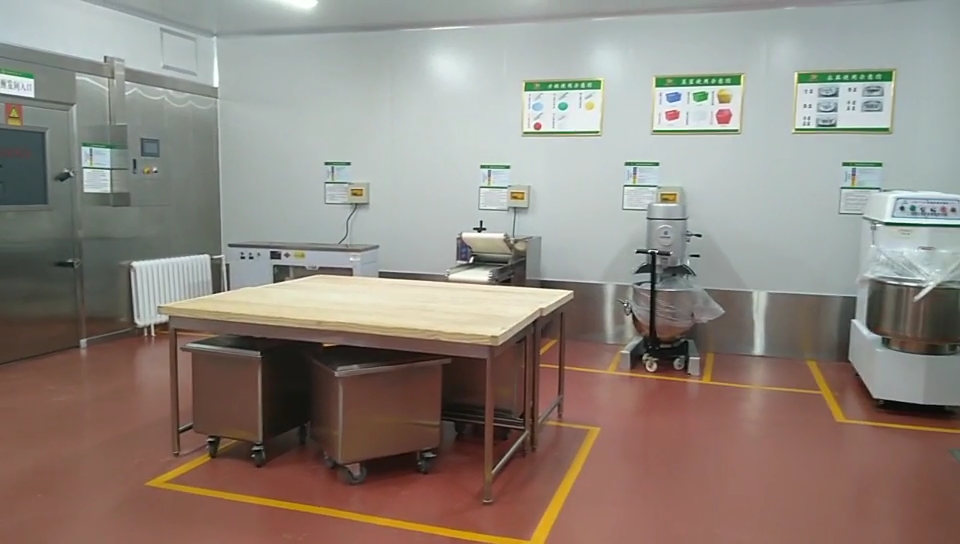 設備:雙星水池、調料柜、餅盆車、木面案板臺、面粉車、攪拌機、和面機、全自動壓面機、面團成型機、分離式切臺、自動擺盤機、自動給餡機等。油網煙罩、蒸箱、蒸汽發生器、油網煙罩、多層電焗爐、醒發庫、四層貨架等。