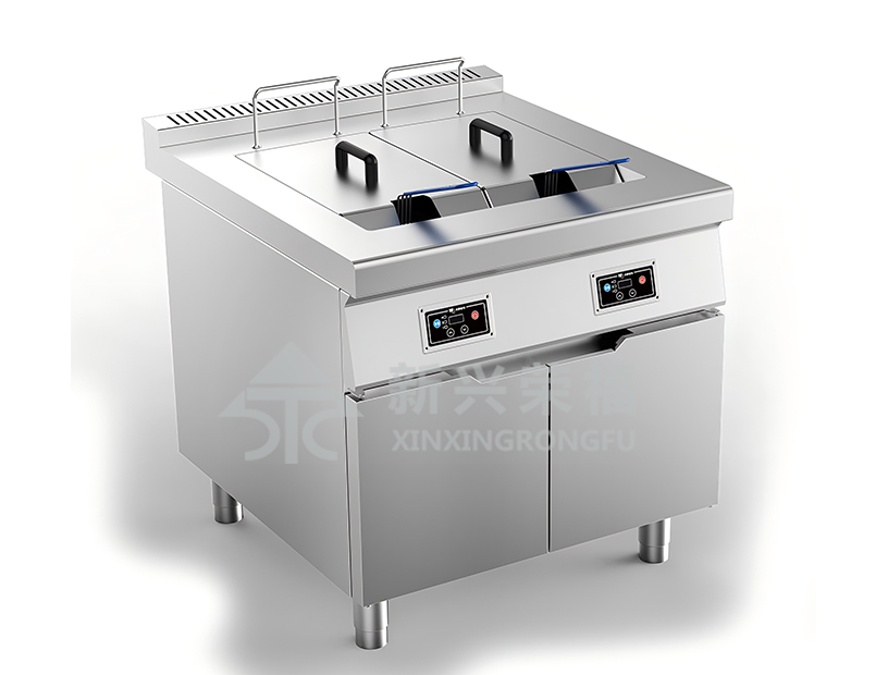 消毒設備 / 產品中心 / 商用電磁設備 / 雙缸雙篩電熱油炸爐連下柜-D800